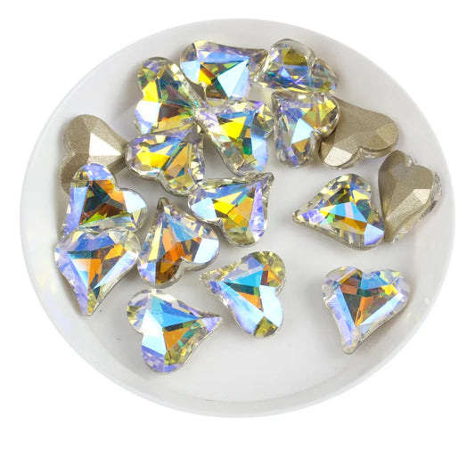 • 12X13Mm Big Crooked Heart Nail Art Rhinestone Pointed Bottom Crystal Stones for Nail Decoration