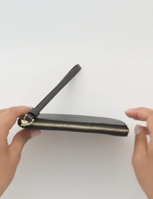 • Womens Wallet PU Leather RFID Blocking Card Holder Elegant Zipper Coin Purse Leaf Pendant(Black)