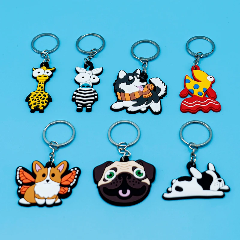1PCS PVC Keychain Cute Animal Keyring Dog Frog Panda Wholesale Kids Toys Anime Accessories for Man Gadgets Custom Key Chain Gift