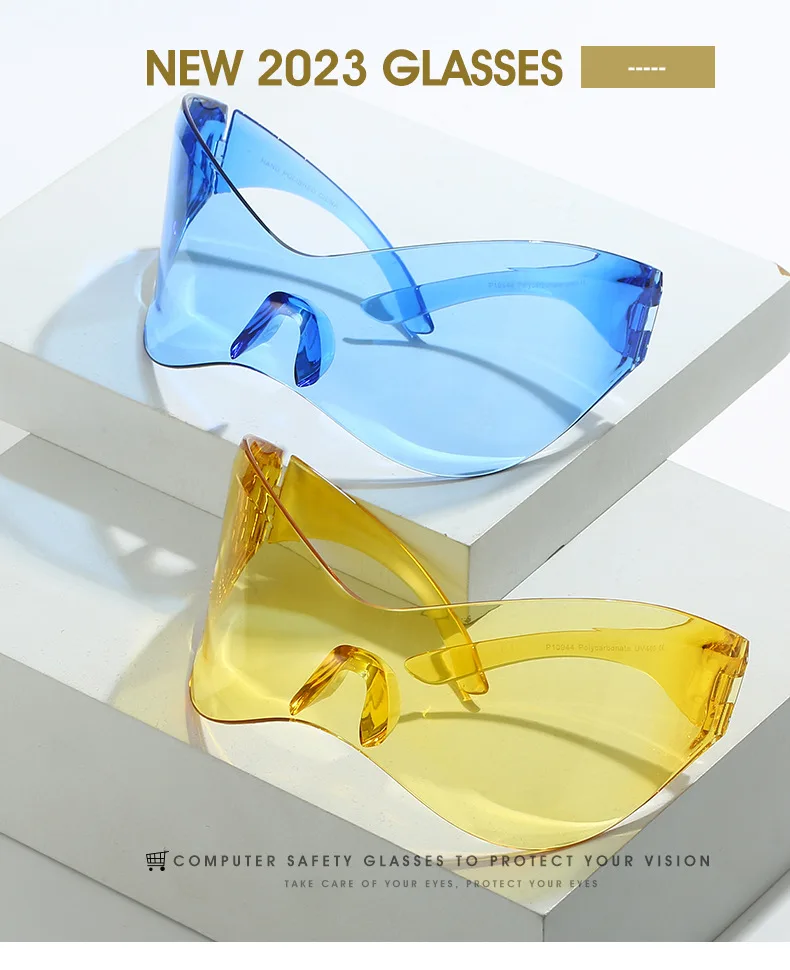 Oversized Steampunk Y2K Sunglasses Women Luxury Brand Design One Piece Wrap Around Sun Glasses Men Fashion Shades Big Frame Mask